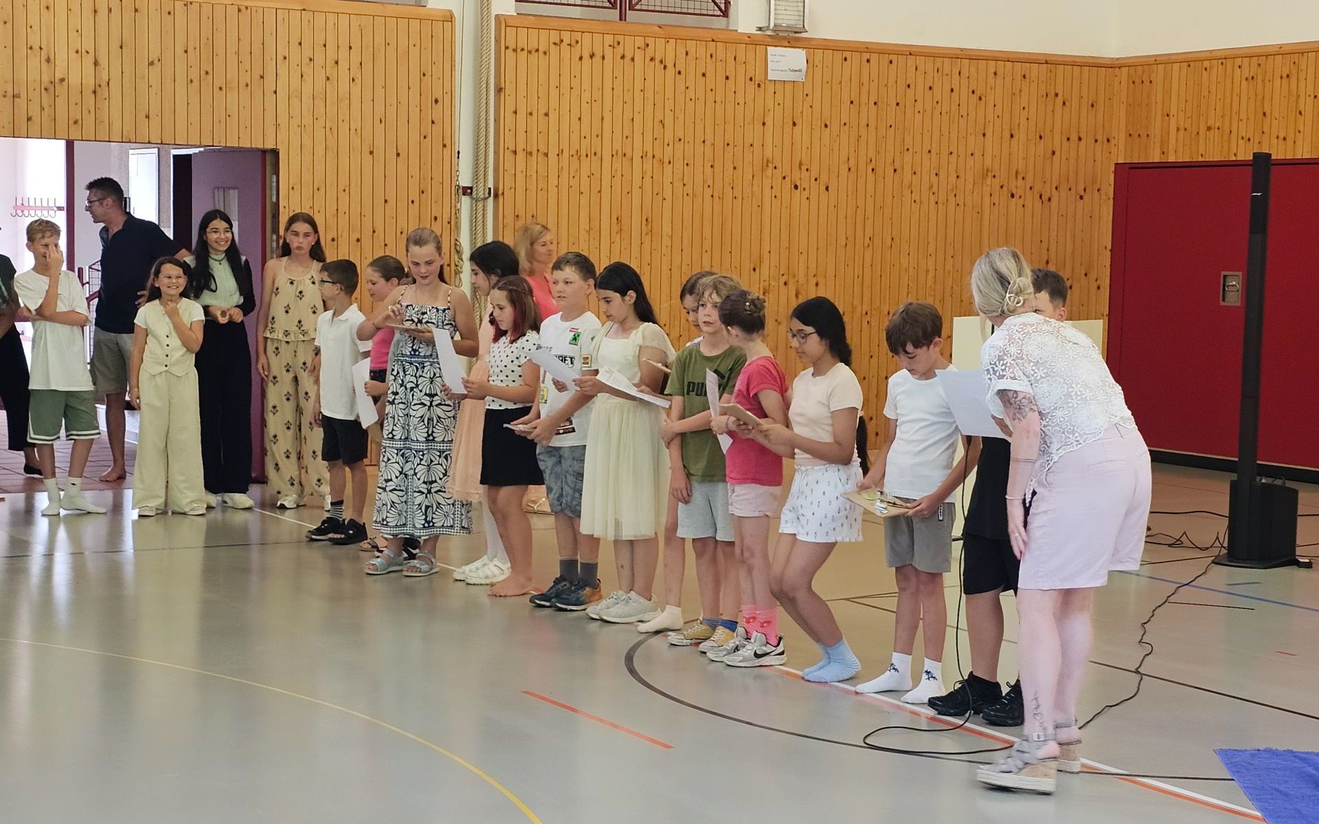 Mit dem Abschlussfest haben wir das Schuljahr ausklingen lassen. Gestartet haben wir mit vielen Darbietungen der Kinder in der Turnhalle. Dabei bekamen die 7. Stüfler ihr Abschlusszeugnis und wurden feierlich aus der Schule "geschmissen". Nach einem wunderschönen Lied aller Kinder der Primarschule Schaanwald, ging es zum gemütlichen Teil über. Auf dem Pausenplatz haben wir das mitgebrachte, leckere Essen der Eltern genossen. Es war ein schöner Abend.