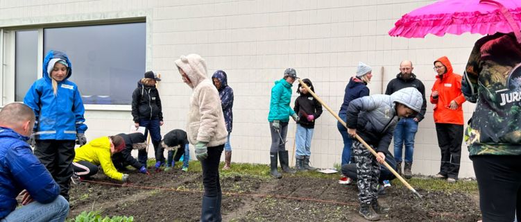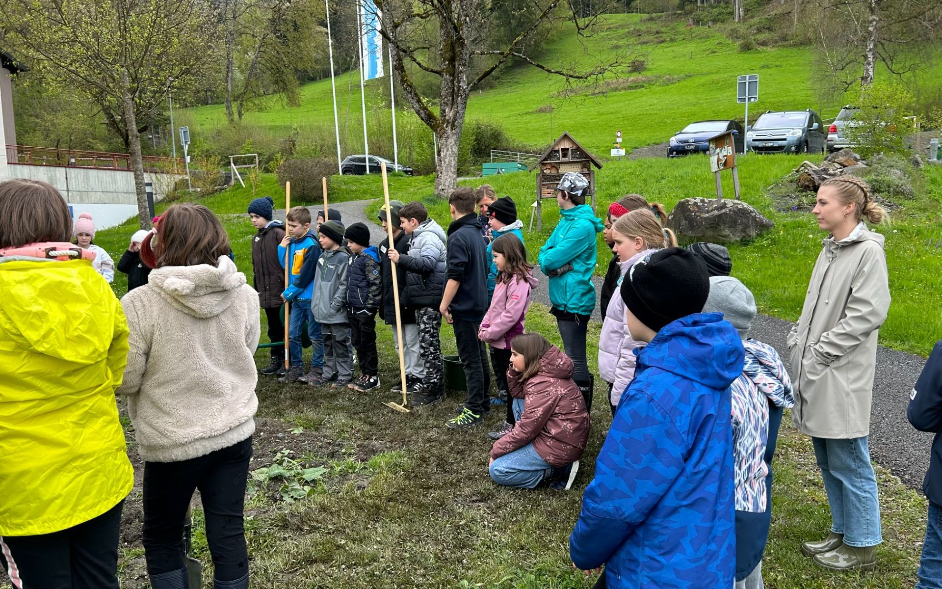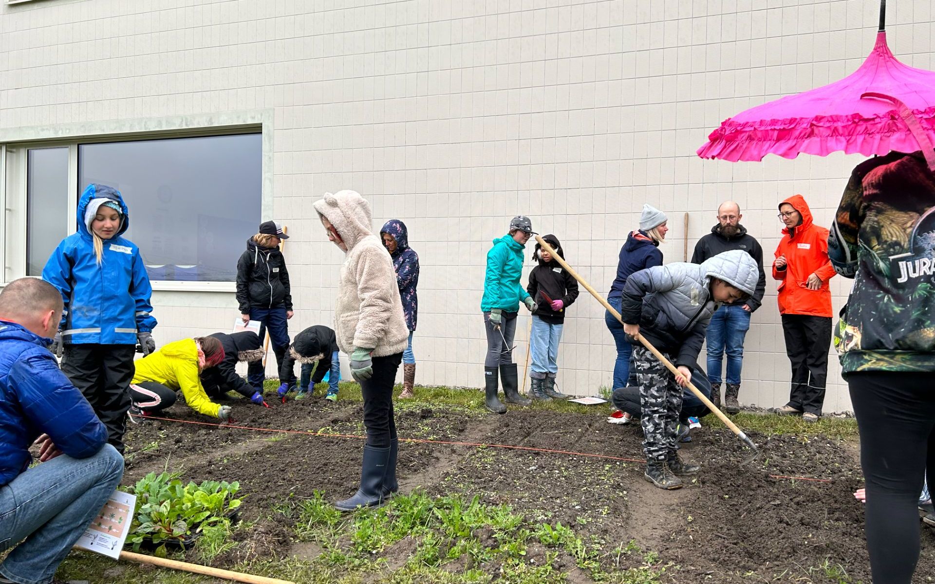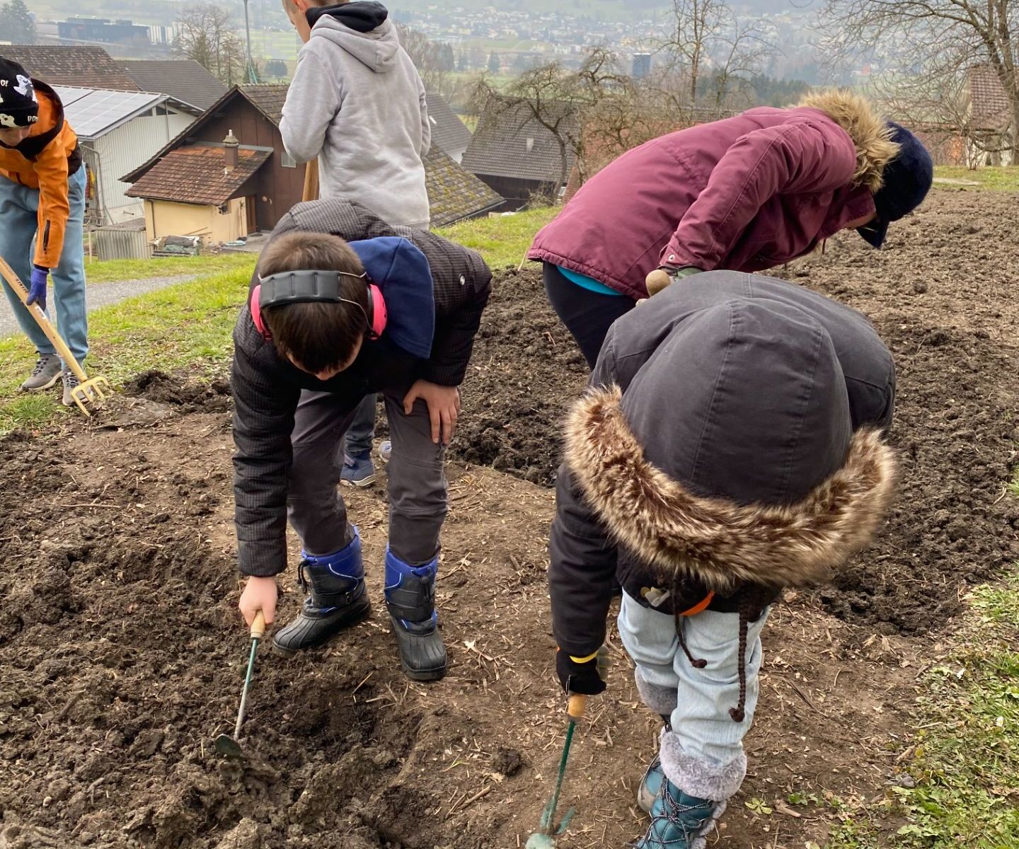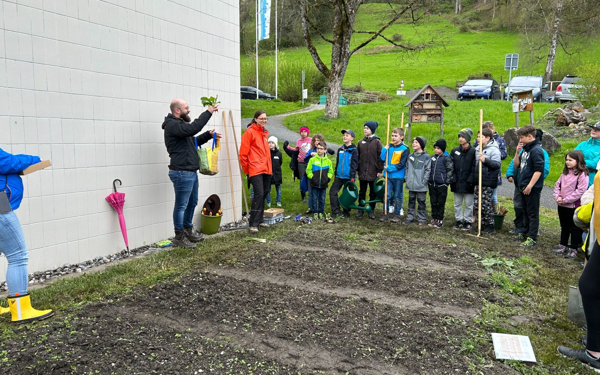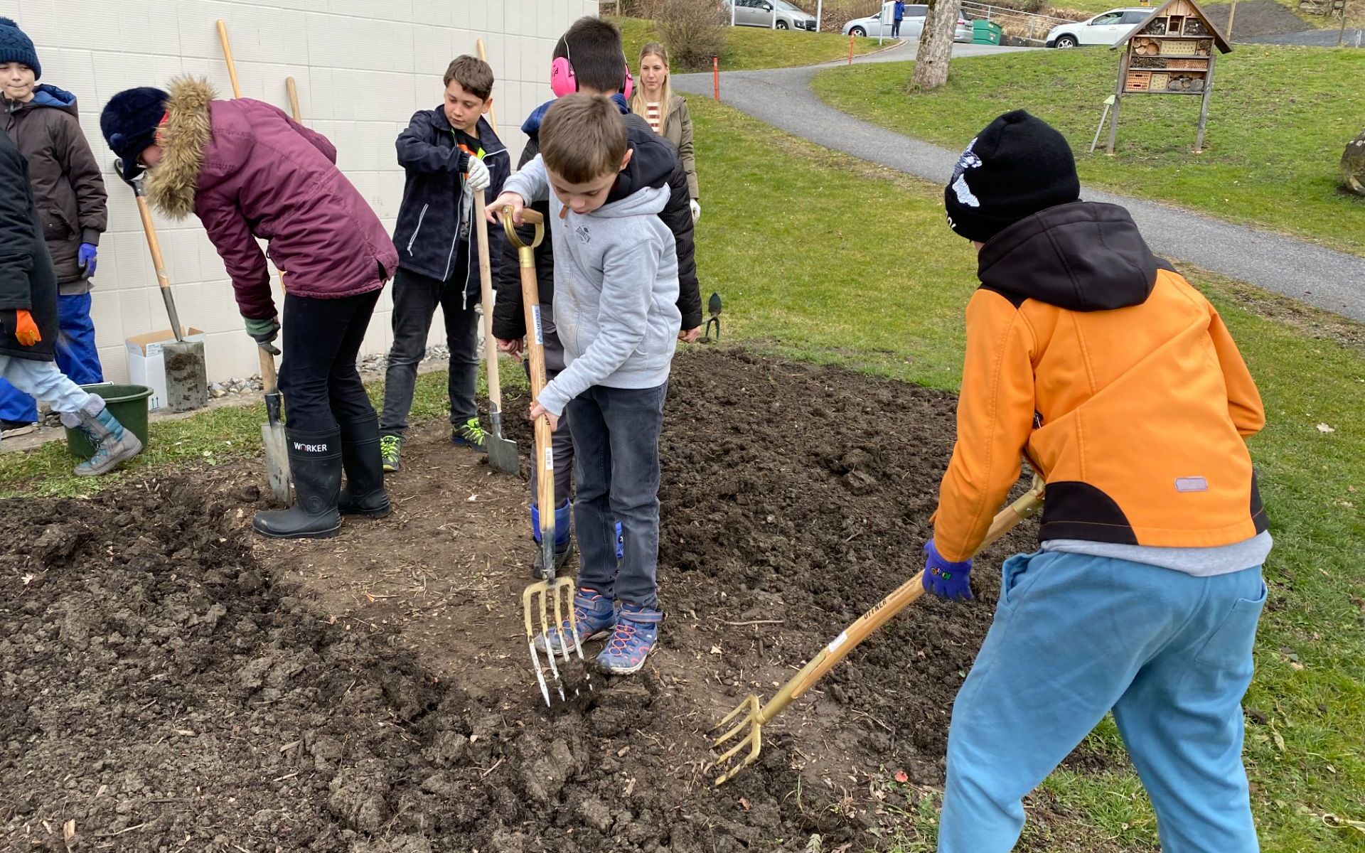 Die Mittelstufe hat mit ihrem Gartenprojekt begonnen. Sandra und Laurin von der Ackerdemie haben mit uns die erste Pflanzung durchgeführt.