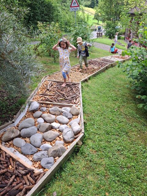 Eine bereits bestehende, ungenutzte Holzkonstruktion auf dem Schulgelände im Schaanwald konnte vor dem Sommer in einen tollen Barfusspfad verwandelt werden.