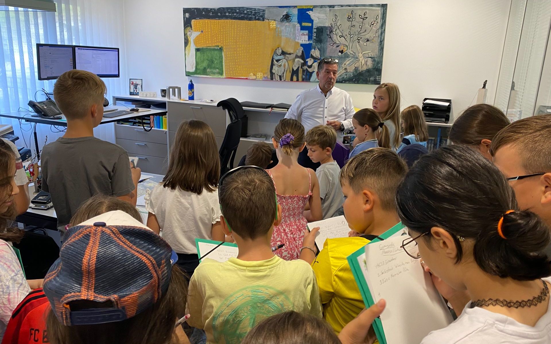 Während unserers Besuches hat uns der Vorsteher Peter Frick die verschiedenen Aufgaben und Abteilungen der Gemeinde erklärt und gezeigt. Das war sehr interessant. Besonders gefallen hat den Schülern der Tresor und die 1100 Schlüssel zu den Gemeindegebäuden.