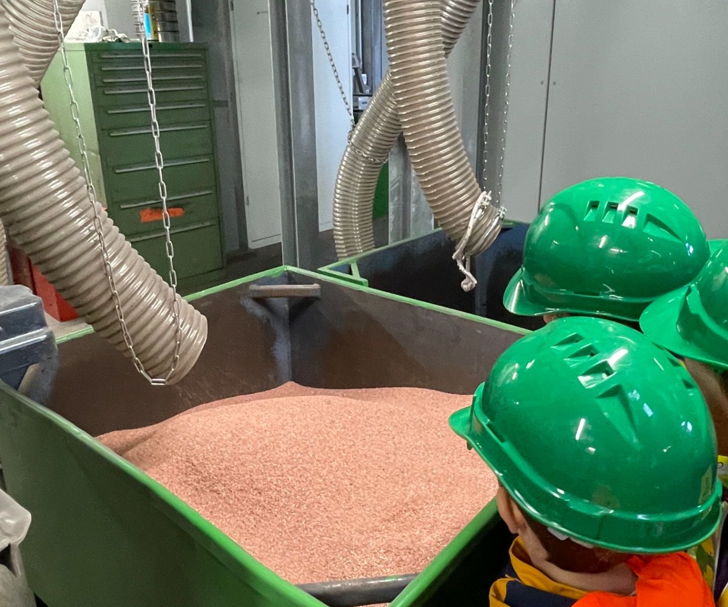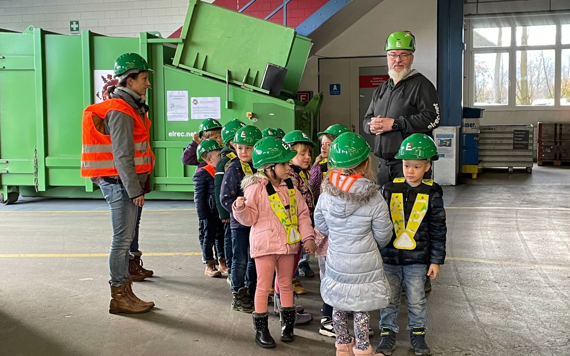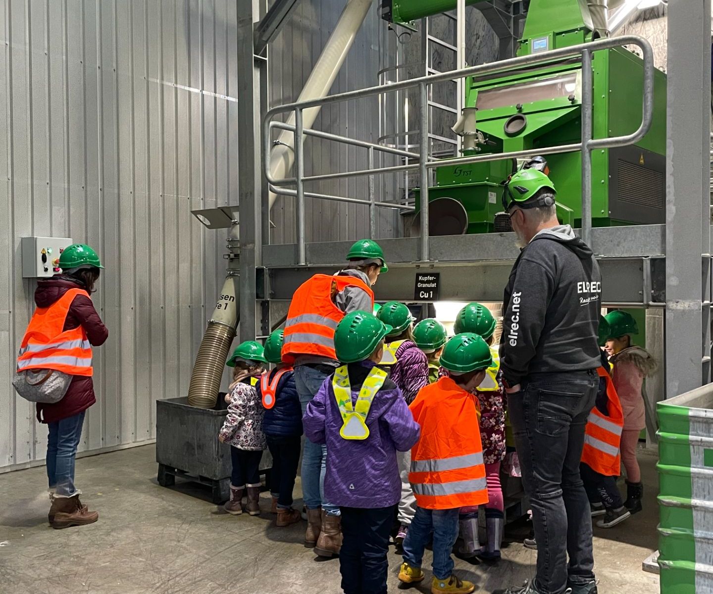 Damit wir noch mehr von Mülltrennung erfahren, besuchten wir im November das Elrec in Eschen. Melanie Elkuch und Willim Brendle empfingen uns sehr freundlich am Eingang. Sofort ging es los! Zuerst schauten wir einen Film und dann verteilten Melanie und William für alle Kinder Helme und Sicherheitswesten. So, nun konnte die Führung losgehen. Sie zeigten uns die Sortieranlagen und die riesengrosse Anlage mit der sie Kupfer aus den Kabel trennten. Das Highlight war, dass alle Kinder, die wollten mit dem Bagger eine Runde um die eigene Achse fahren durften. [nbsp]War das ein Spass!!