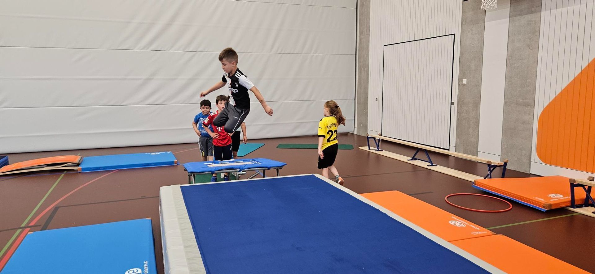 Aufgrund des Wetters musste der jährliche Sporttag der Schulen Mauren/Schaanwald und Eschen/Nendeln zweimal verschoben werden. Auch beim dritten Mal stand das Wetter nicht auf unserer Seite. Dies war aber noch lange kein Grund keinen tollen Bewegungstag für die Kinder zu organisieren. In kürzester Zeit wurden in Mauren vier Posten mit verschiedenen Bewegungsangeboten auf die Beine gestellt. Den ganzen Freitagvormittag konnten sich die Kinder in der Turnhalle austoben oder auch auf dem grossen Pausenplatz Spiele spielen. Der Elternrat stand uns auch tatkräftig zur Seite und brachte für alle Kinder einen feinen, gesunden z'Nüni. Verabschiedet wurden die ausgepowerten Kinder mit einem kleinen Geschenk.