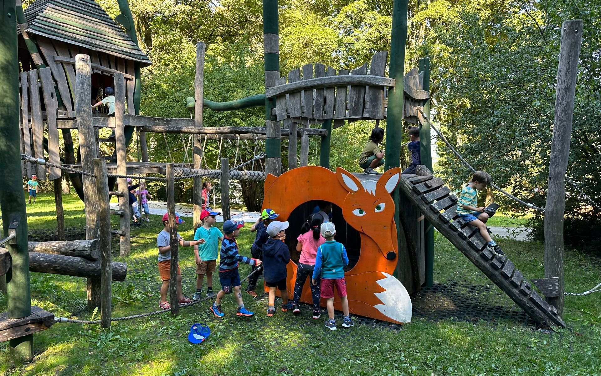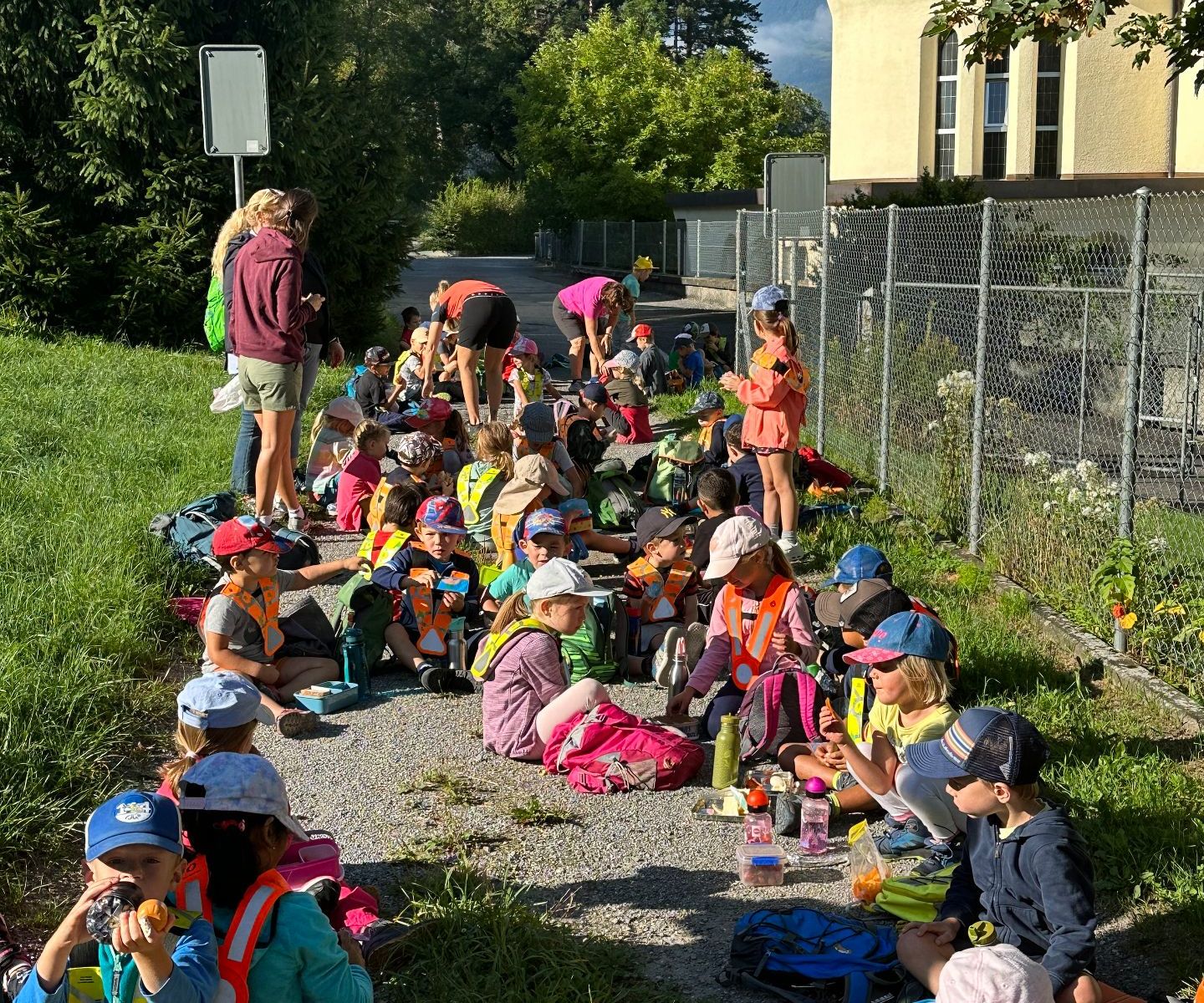 Am Dienstag, 5. September 2023 fand die Herbstwanderung der Gemeindeschulen Mauren / Schaanwald statt. Alle Kindergartenlehrpersonen und alle Kinder trafen sich im Kindergarten. Wir liefen dann mit unseren Gruppen zum Parkplatz im Weiherring. Dann ging es mit dem Bus nach Schaan. Wir liefen ein kleines Stück Richtung Duxspielplatz. Dazwischen machten wir eine Znünipause. Nach der Stärkung ging es weiter zum Ziel, der Duxspielplatz. Dort konnten die Kinder spielen, klettern, balancieren, rutschen, bauen, schaukeln, Wasser stauen und noch vieles mehr. Die Kinder genossen den tollen Tag! Müde ging es am Nachmittag mit dem Bus wieder nach Mauren zurück. Es war ein toller unvergesslicher Tag!