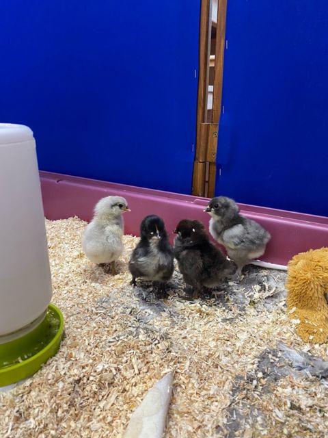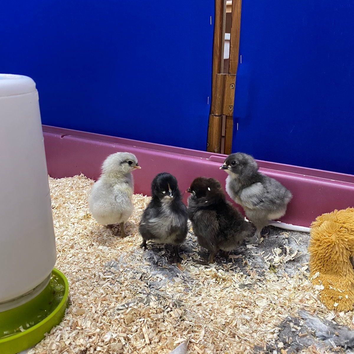 Das Thema Hühner begleitet die Kindergartengruppen Reh und Igel bis zu den Osterferien. Die Gruppen haben einen Brutkasten im Kindergartenraum. Die Kinder können die Eier beobachten und zählen die Tage bis die Küken schlüpfen.