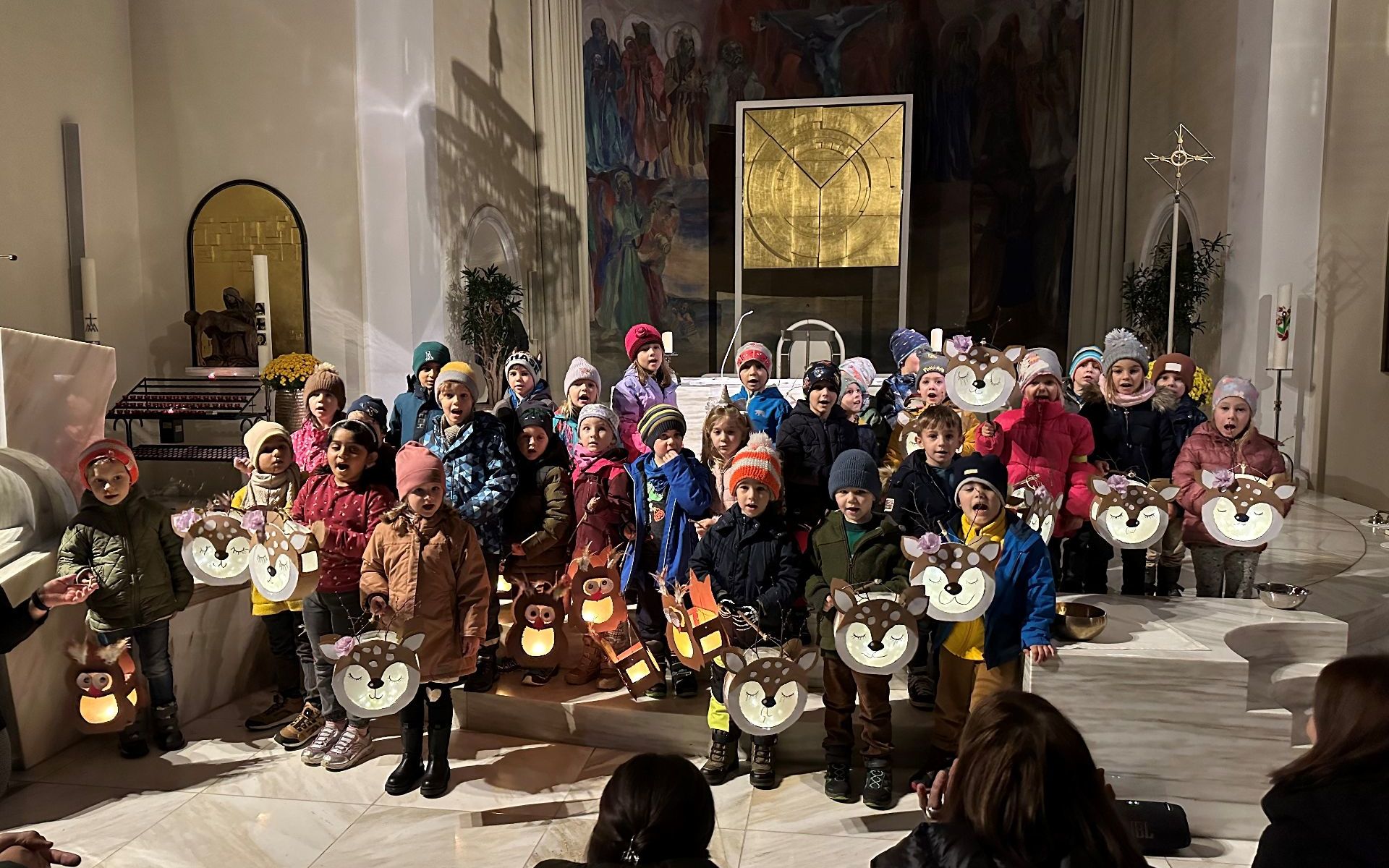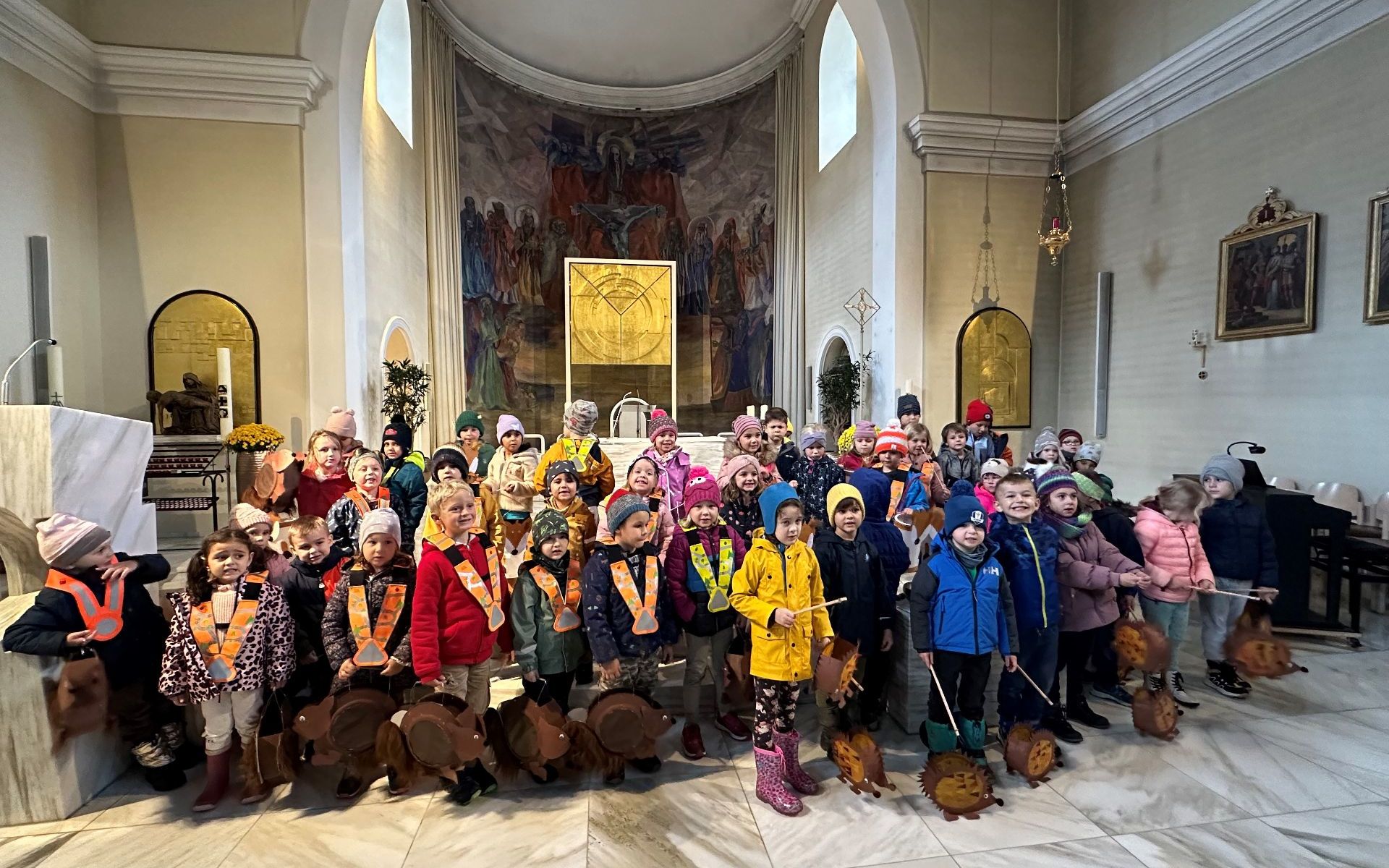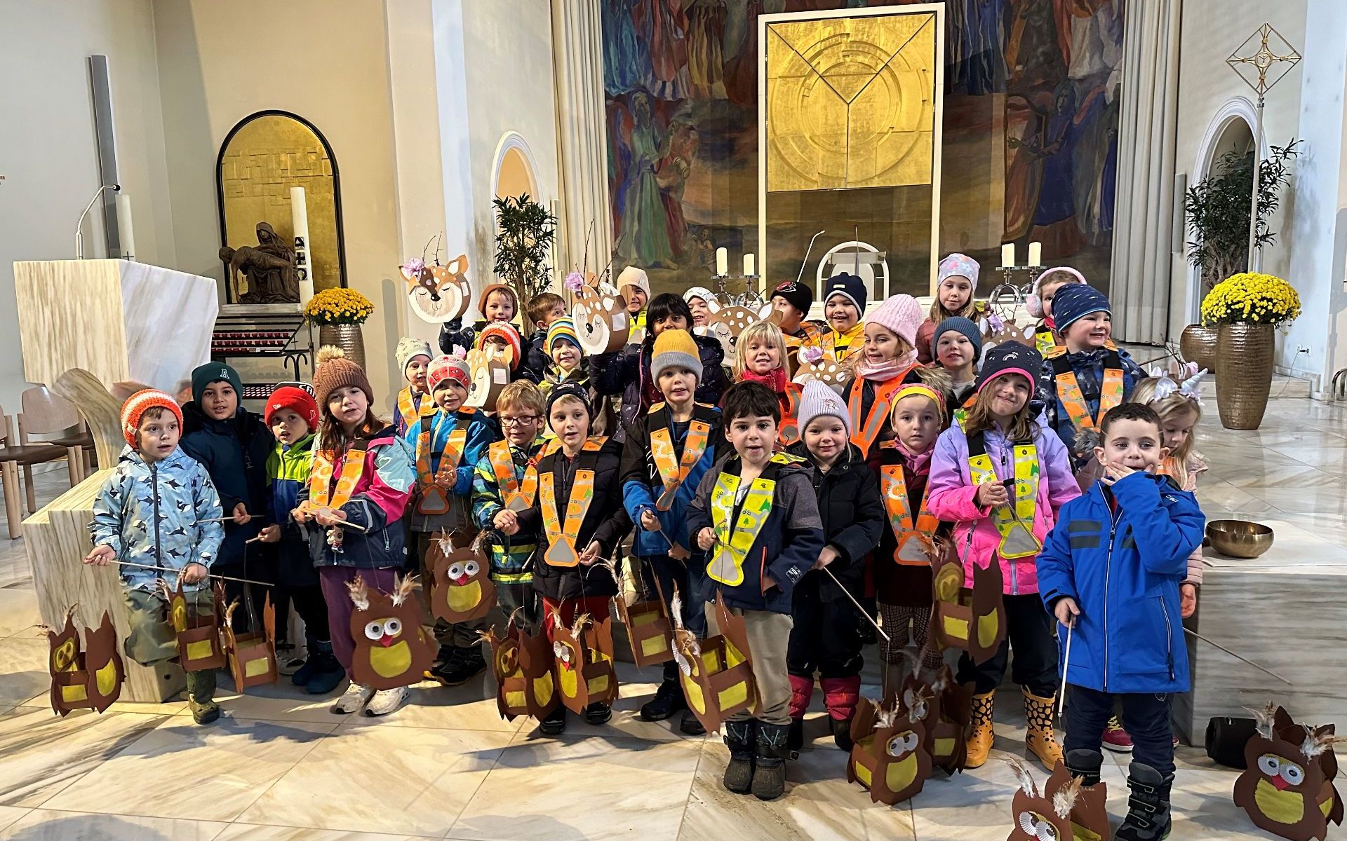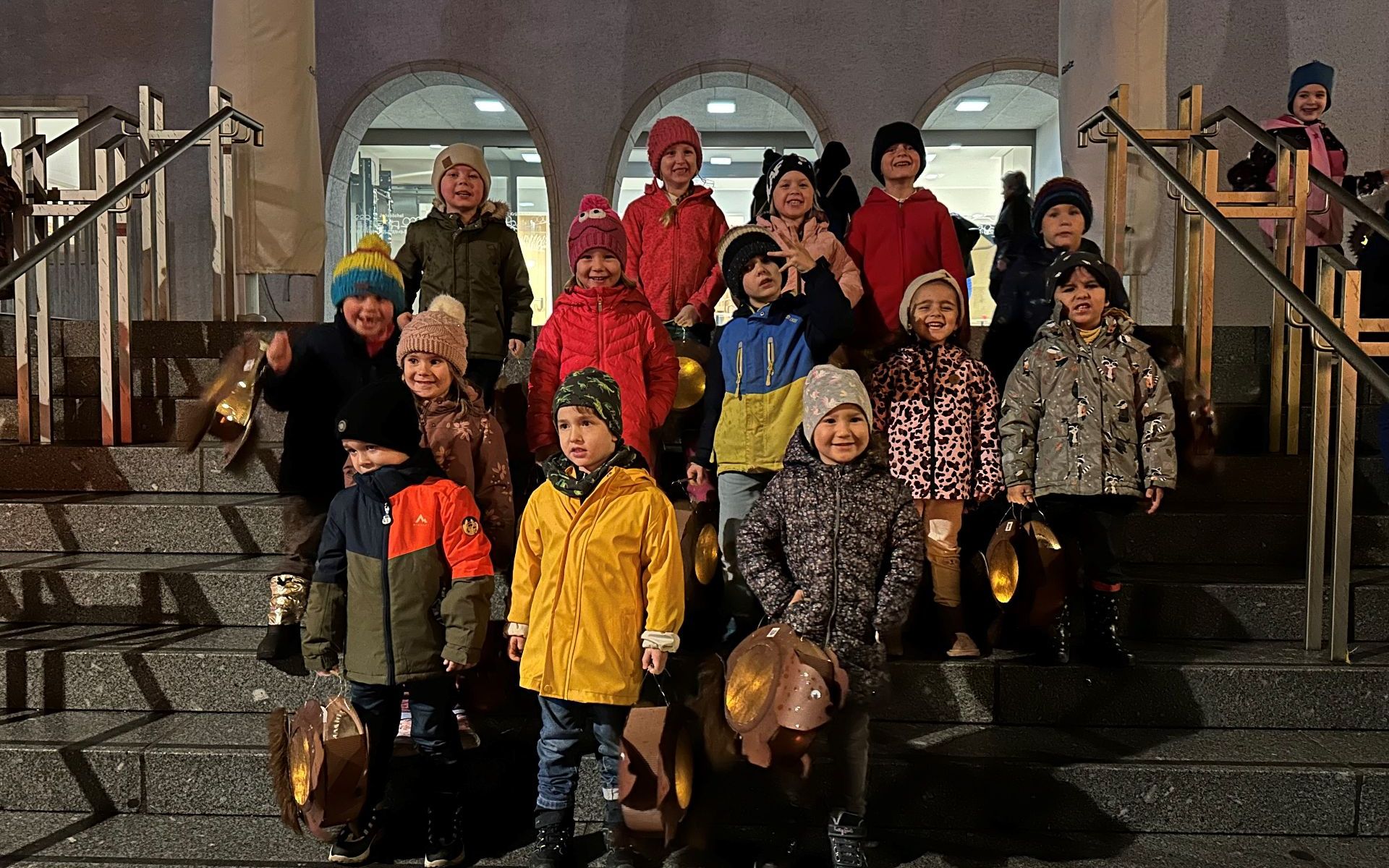 Alle trafen sich aufgeregt vor der Kirche in Mauren. Die Eltern, Geschwister, Nanas, Nenis,… wartetet schon gespannt in der Kirche auf den Einzug der Kindergartenkinder. Mit dem Lied „Ich geh mit meiner Laterne“ liefen wir in die Kirche. Anschliessend sangen die Kindergartengruppen ihre gelernten Lieder.