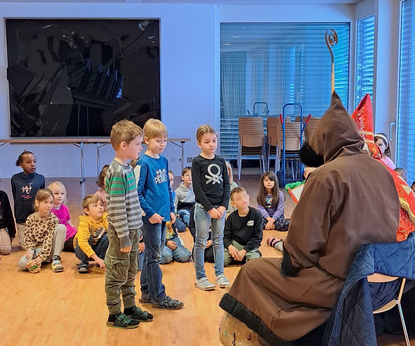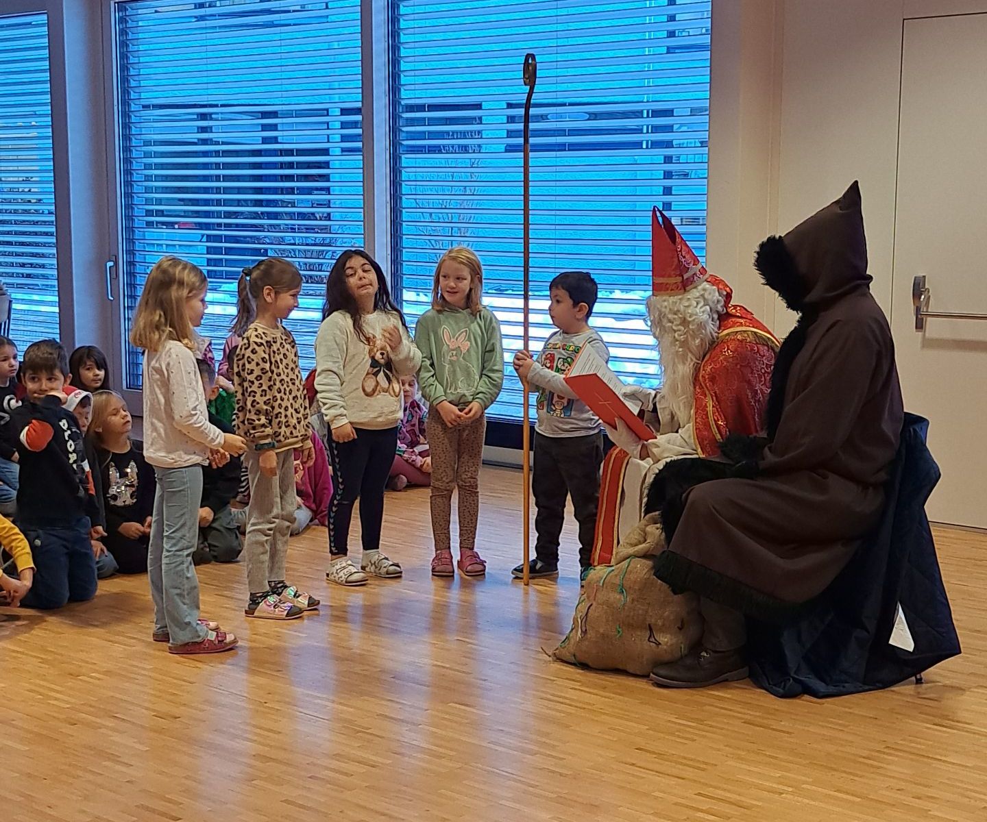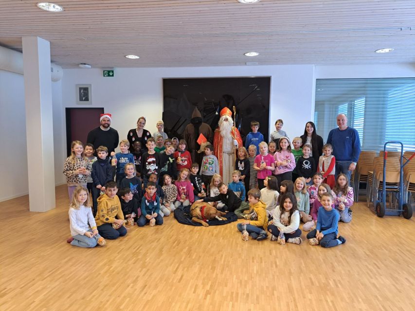 Was für ein aufregender Tag heute für die 1. Klässler der PSM. Der Nikolaus und der Krampus kamen auf Besuch und haben für jedes Kind was mitgebracht. Wie üblich hat der Nikolaus auch aus seinem grossen roten Buch vorgelesen und alle Kinder gelobt und getadelt. Der Krampus musste nicht viel schimpfen und die Kinder hörten mit grossen Augen den Worten des Nikolauses zu. Zum Schluss und zum Dank sangen die Kinder Weihnachtslieder.