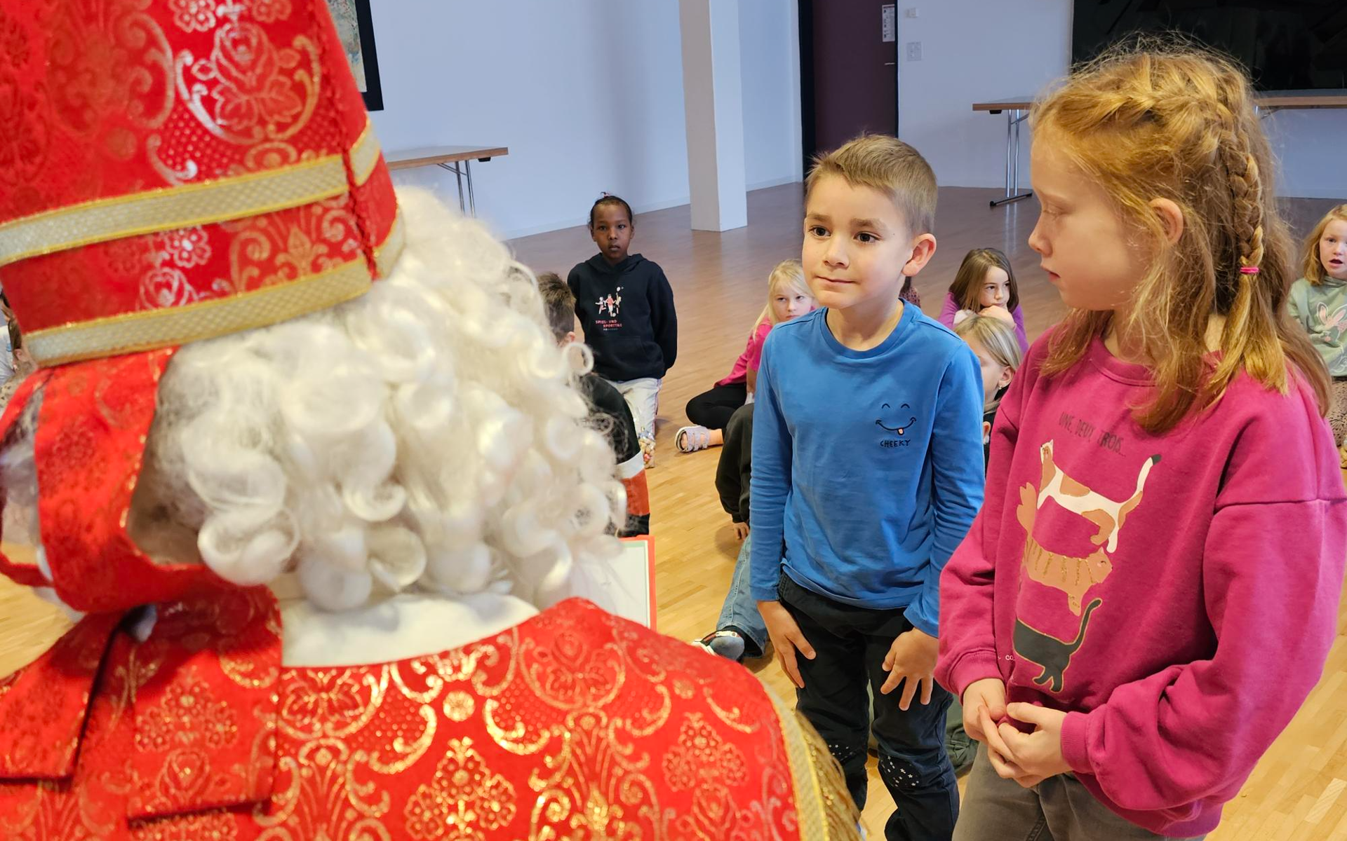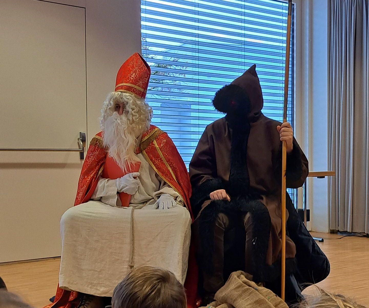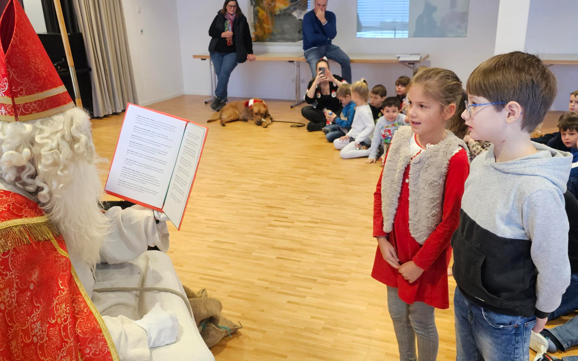 Was für ein aufregender Tag heute für die 1. Klässler der PSM. Der Nikolaus und der Krampus kamen auf Besuch und haben für jedes Kind was mitgebracht. Wie üblich hat der Nikolaus auch aus seinem grossen roten Buch vorgelesen und alle Kinder gelobt und getadelt. Der Krampus musste nicht viel schimpfen und die Kinder hörten mit grossen Augen den Worten des Nikolauses zu. Zum Schluss und zum Dank sangen die Kinder Weihnachtslieder.