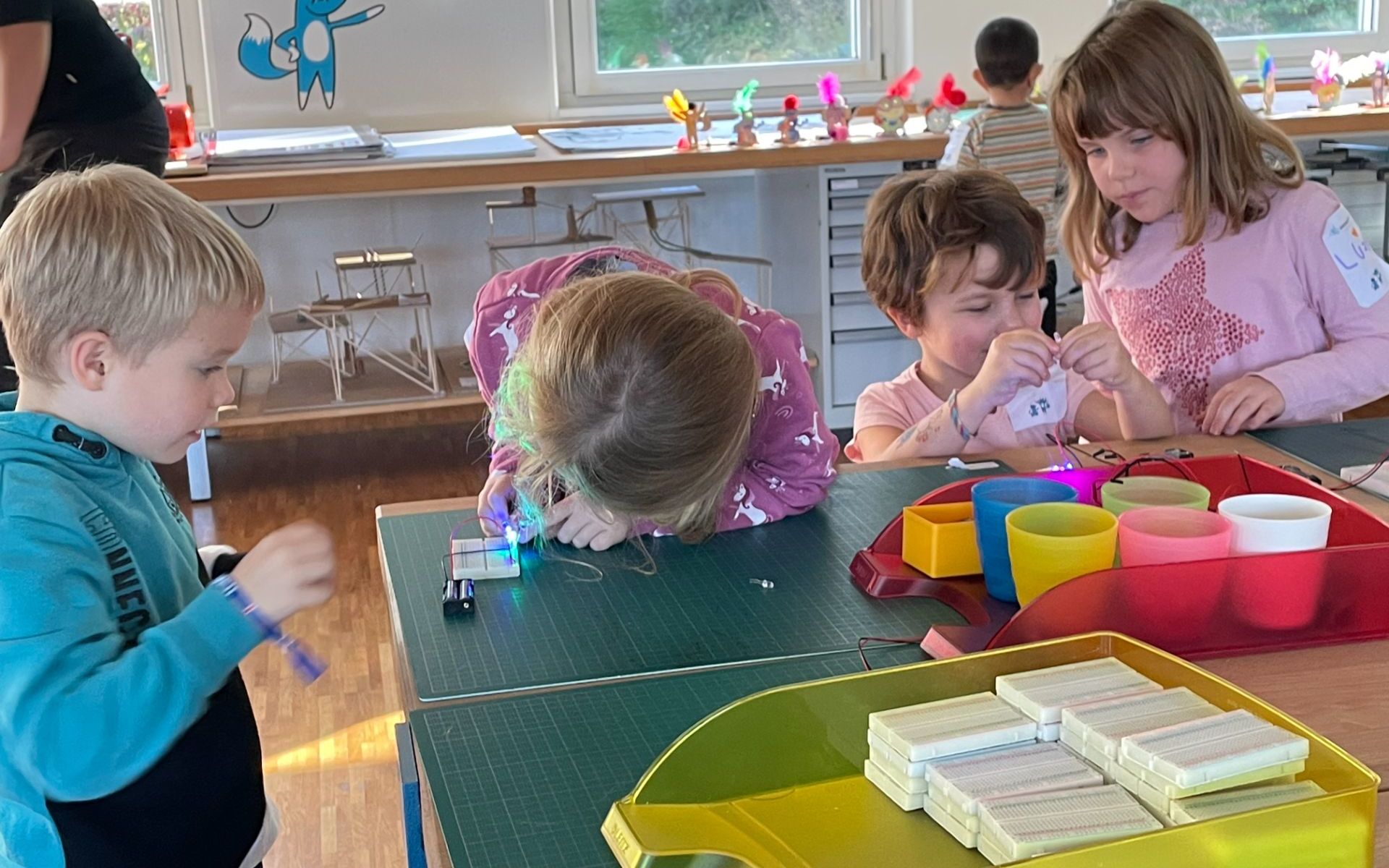 Das Peppermint bietet auch für die Kindergartenkinder das Programm "Wettrennen der Gemische" an. Da konnten die Kinder viele Flüssigkeiten zusammenmischen und beobachten was passiert.