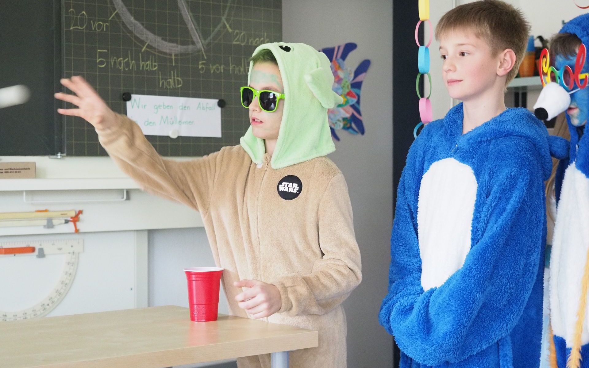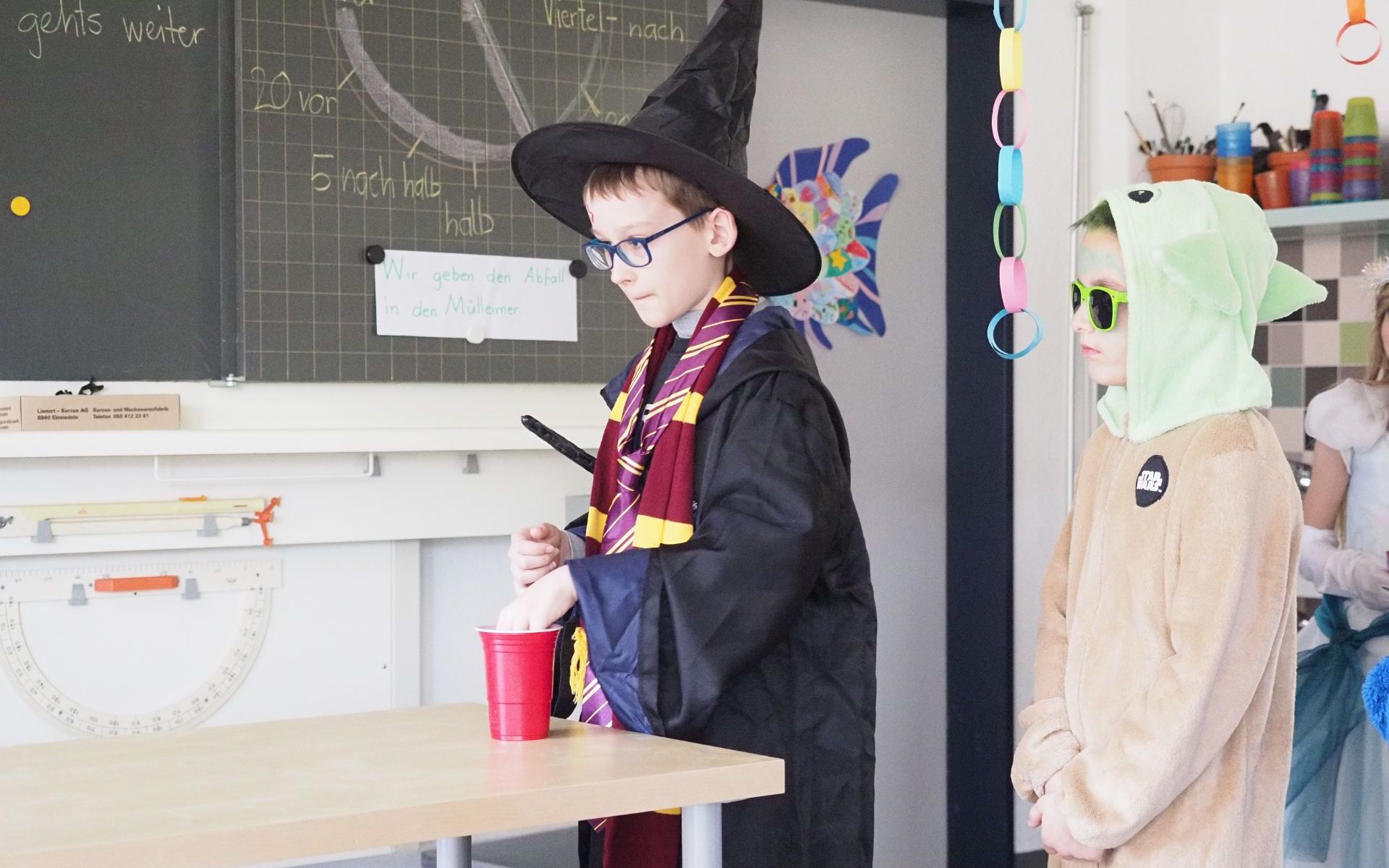 Die Schülerfasnacht wurde am Freitagvormittag mit der Guggamusik „Tuarbaguger“ eingeläutet. Am Nachmittag durften die Kinder verkleidet in die Schule kommen und sich an verschiedenen Posten austoben. Vom verrückten Affenfangis in der Turnhalle bis zum entspannten Schminken war alles dabei! Zur Stärkung gab es auch leckere Donuts. Abgerundet wurde der Tag mit einer gemeinsamen Disco-Saison in der Aula. Was für ein lustiger Tag!