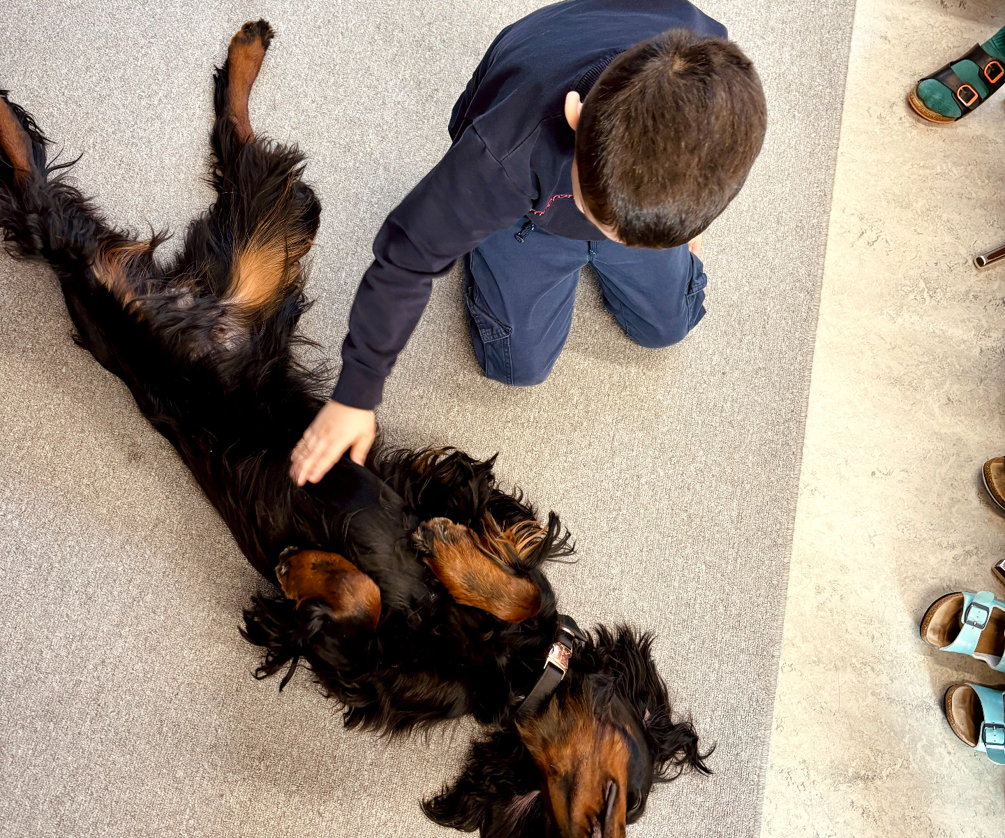 Seit dem 2. Semester hat die Primarschule Mauren ein neues Teammitglied.  Auf vier Pfoten erfreut Loni die Kinder der Klasse 1a. Loni unterstützt die Klasse während dem Unterricht und verbessert unter anderem auch das Klassenklima. Die verantwortliche Lehrerin, Eva-Maria Schieffer, und Loni haben soeben mit der Ausbildung gestartet. Wir wünschen ihnen viel Erfolg!